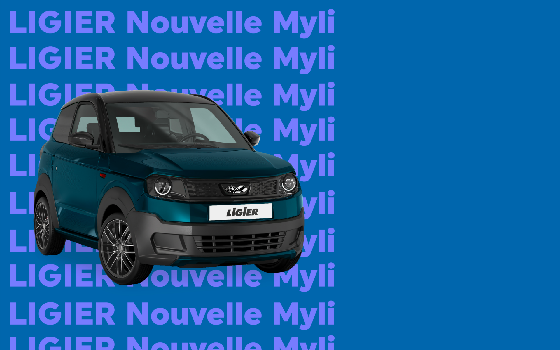 Avec la Ligier Myli profitez dès maintenant d’une mobilité sans permis augmentée ! Pratique, stylée, ultra-maniable, sur-équipée, Myli a été pensée pour tous vos besoins.